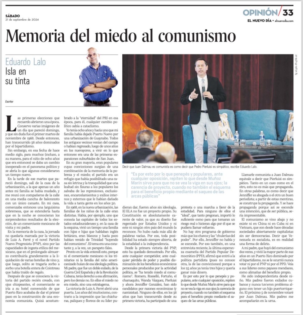- “Memoria del miedo al comunismo”, la nueva columna de Eduardo Lalo sobre el uso del miedo al comunismo como arma del bipartidismo