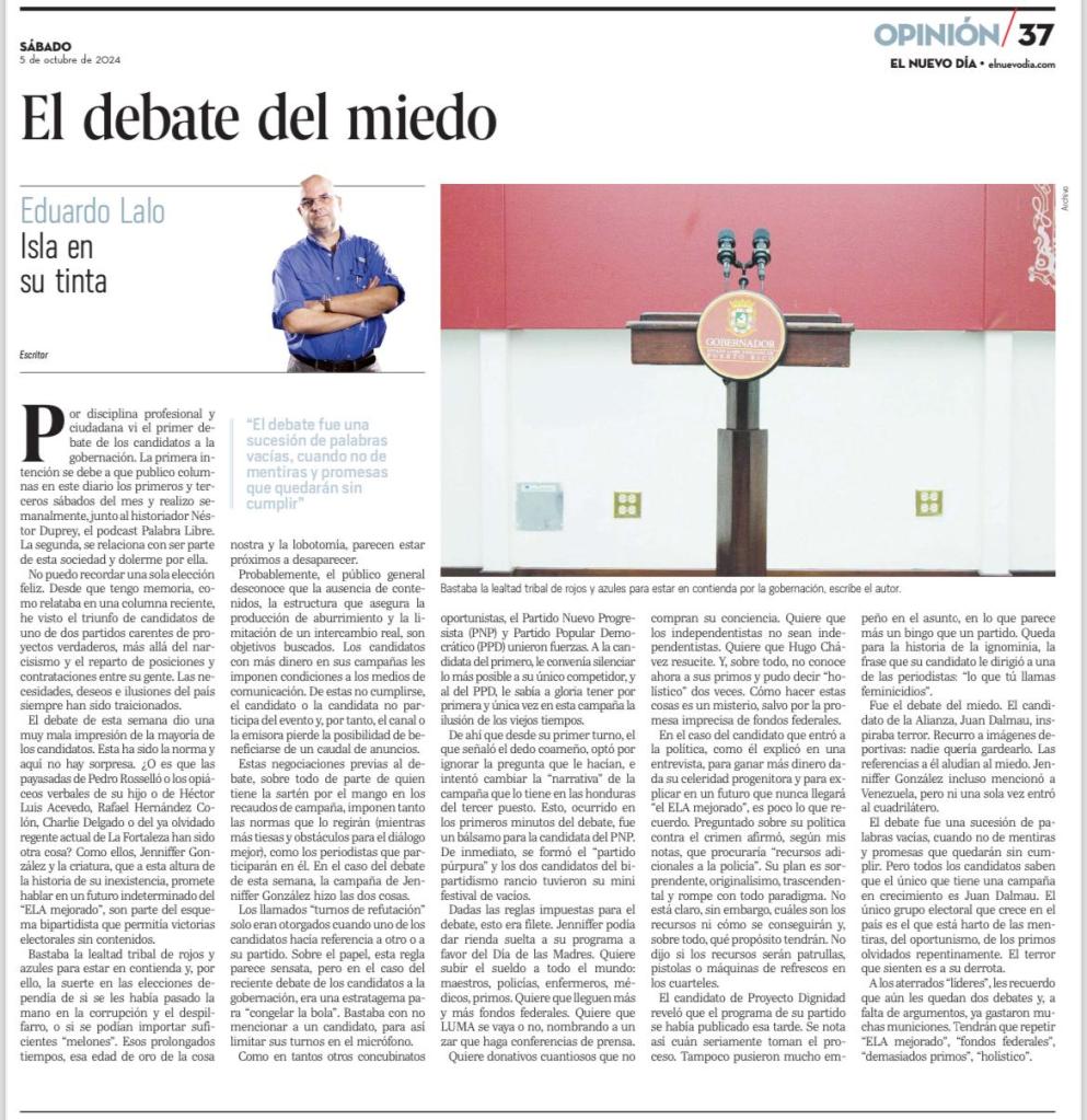 - “El debate del miedo”, nueva columna de Eduardo Lalo