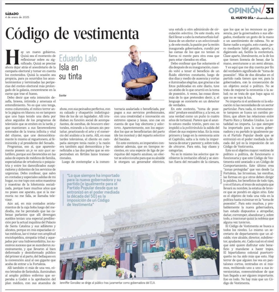 Para quienes aún no hayan leído la columna de Eduardo Lalo publicada originalmente el 4 de enero de 2025, se la incluimos aquí.