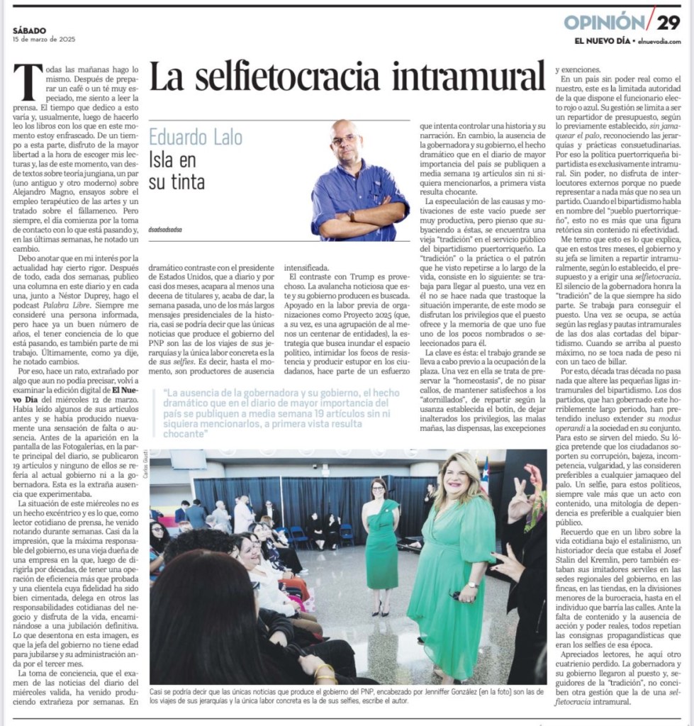 Compartimos la columna de Eduardo Lalo publicada el 15 de marzo de 2025.