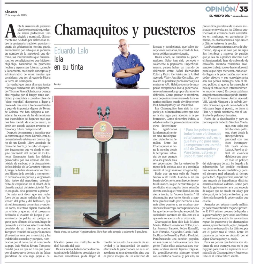 Compartimos la más reciente columna de Eduardo Lalo publicada el 17 de mayo de 2025.