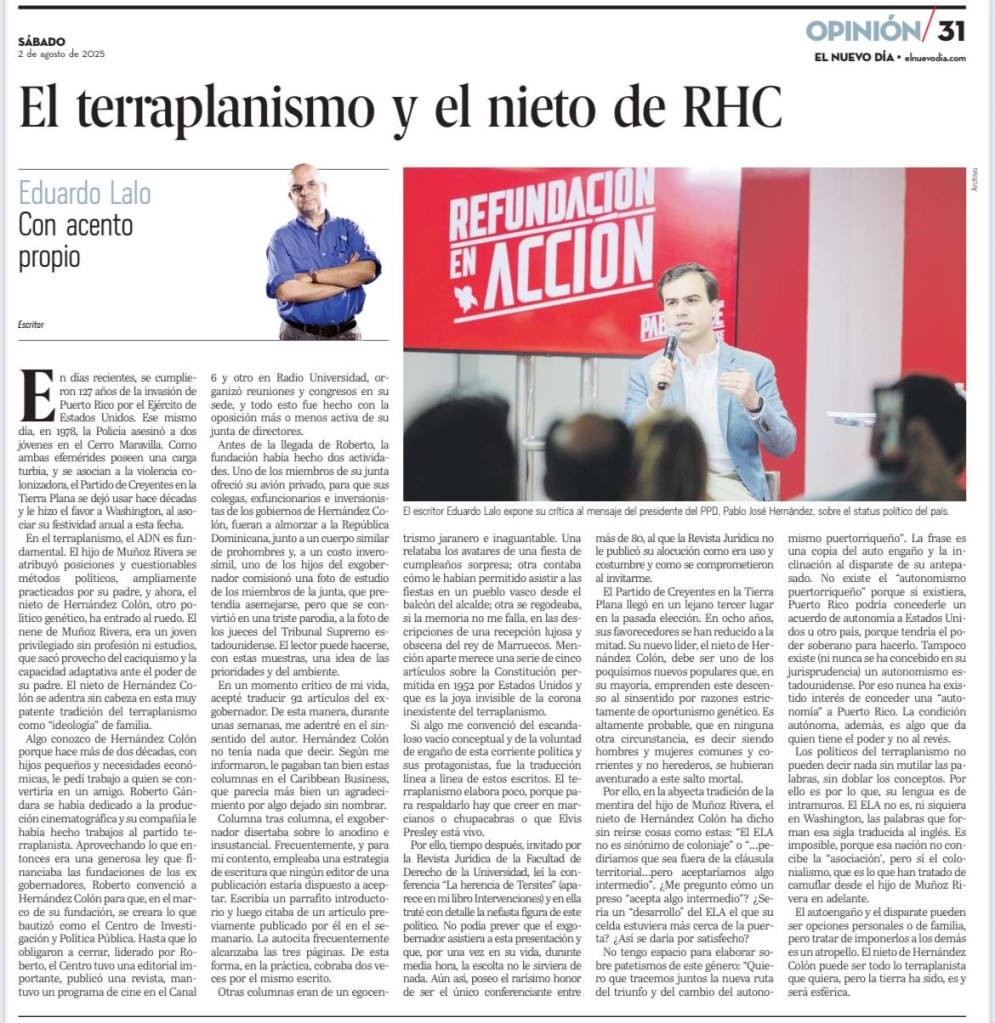 Compartimos la columna de Eduardo Lalo publicada el 2 de agosto de 2025 en El Nuevo Día.