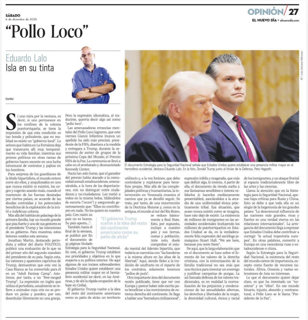 Compartimos la columna de Eduardo Lalo publicada el sábado, 6 de diciembre de 2025 en El Nuevo Día.